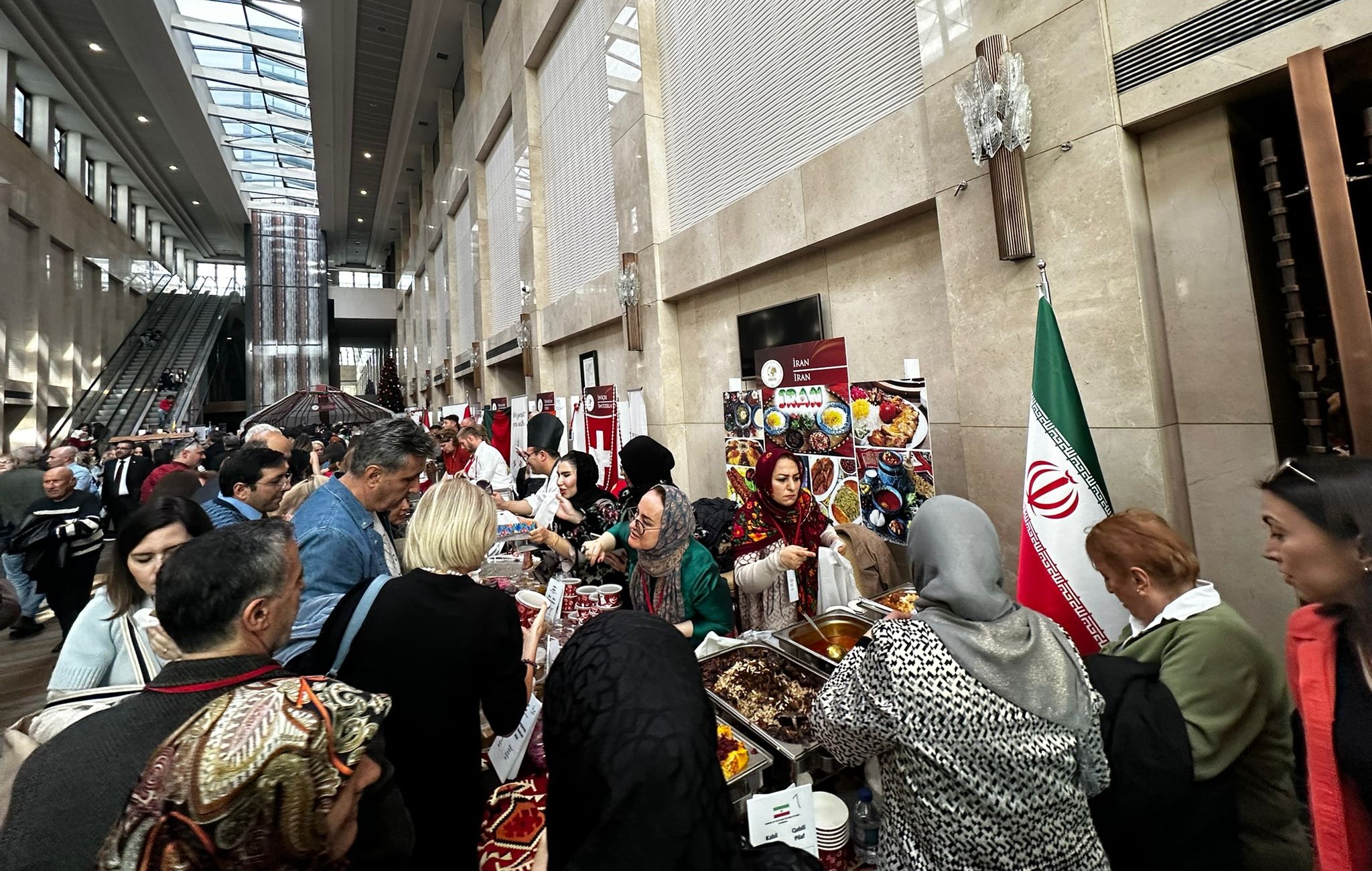 غرفه سهگانه جمهوری اسلامی ایران در بازارچه خیریه دیپلماتیک شامل بخشهای صنایعدستی، غذای ایرانی و موسیقی سنتی ایران مورد استقبال گسترده بازدیدکنندگان قرار گرفت.